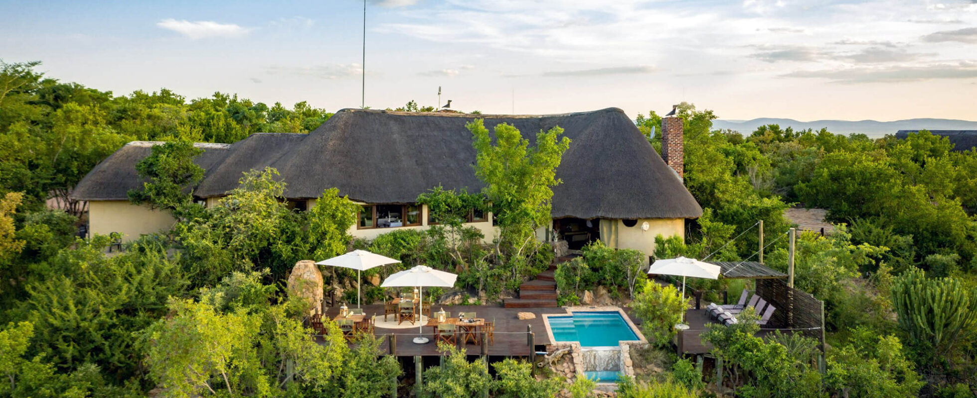 Il Bushwa Private Game Lodge si trova all’interno della riserva privata di Bushwa, nel cuore della biosfera di Waterberg – un’area designata dall’UNESCO nella provincia del Limpopo. Il lodge offre una selezione di chalet spaziosi, ciascuno arredato con un letto matrimoniale, un bagno privato, una doccia all’aperto e una terrazza privata con viste stupende sulla natura circostante. Trascorri la giornata rilassandoti a bordo piscina, rigenerandoti presso la Tsamma Bush Spa, sorseggiando cocktail al bar, gustando una cena raffinata nel ristorante elegante del lodge e concludendo la serata accanto al camino con un drink – circondato dai suoni rilassanti della savana.
