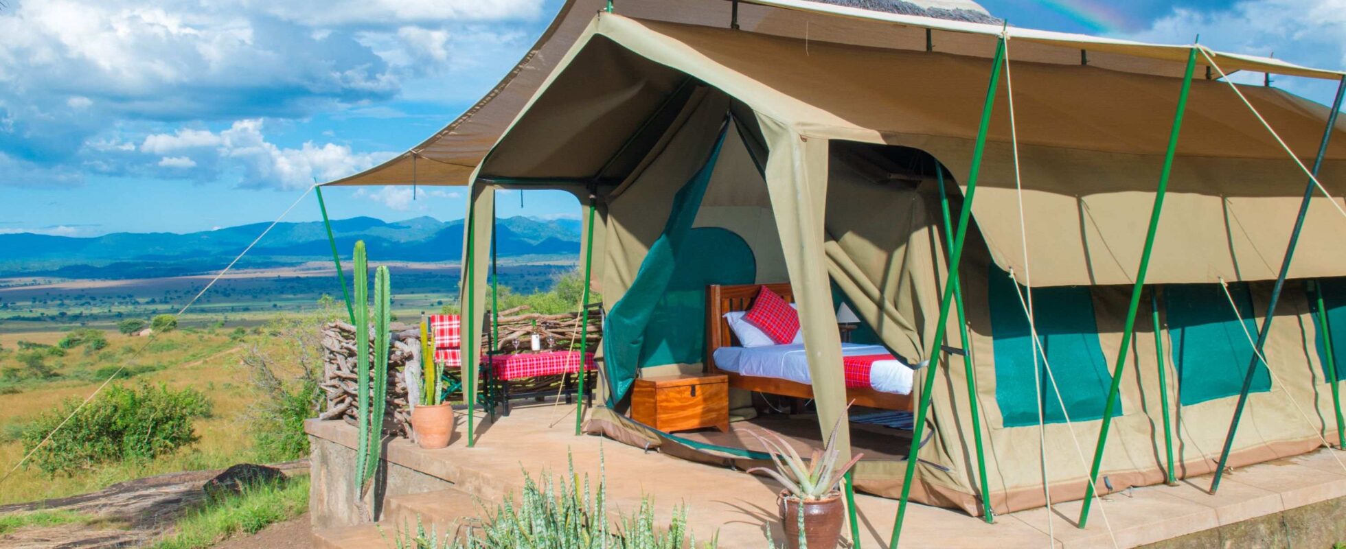 Il Kidepo Savannah Lodge è una struttura semplice e accogliente, a pochi passi dal Kalokudo Gate del Kidepo Valley National Park. Regala viste straordinarie sulla vasta valle del Narus, sul Monte Morungole e fino al confine con il Sud Sudan. Le dodici tende safari con bagno privato, costruite su piattaforme rialzate in legno, offrono una sistemazione essenziale ma confortevole, con un letto matrimoniale oppure due letti singoli, una terrazza privata e un bagno con docce calde e WC, ospitato in una piccola capanna rotonda tradizionale accanto alla tenda. L’area bar e ristorante con tetto in paglia è perfetta per un aperitivo al tramonto e per la cena, servita con un menu fisso (dato che il lodge funziona a energia solare), ma lo chef è felice di tenere conto di eventuali esigenze alimentari.