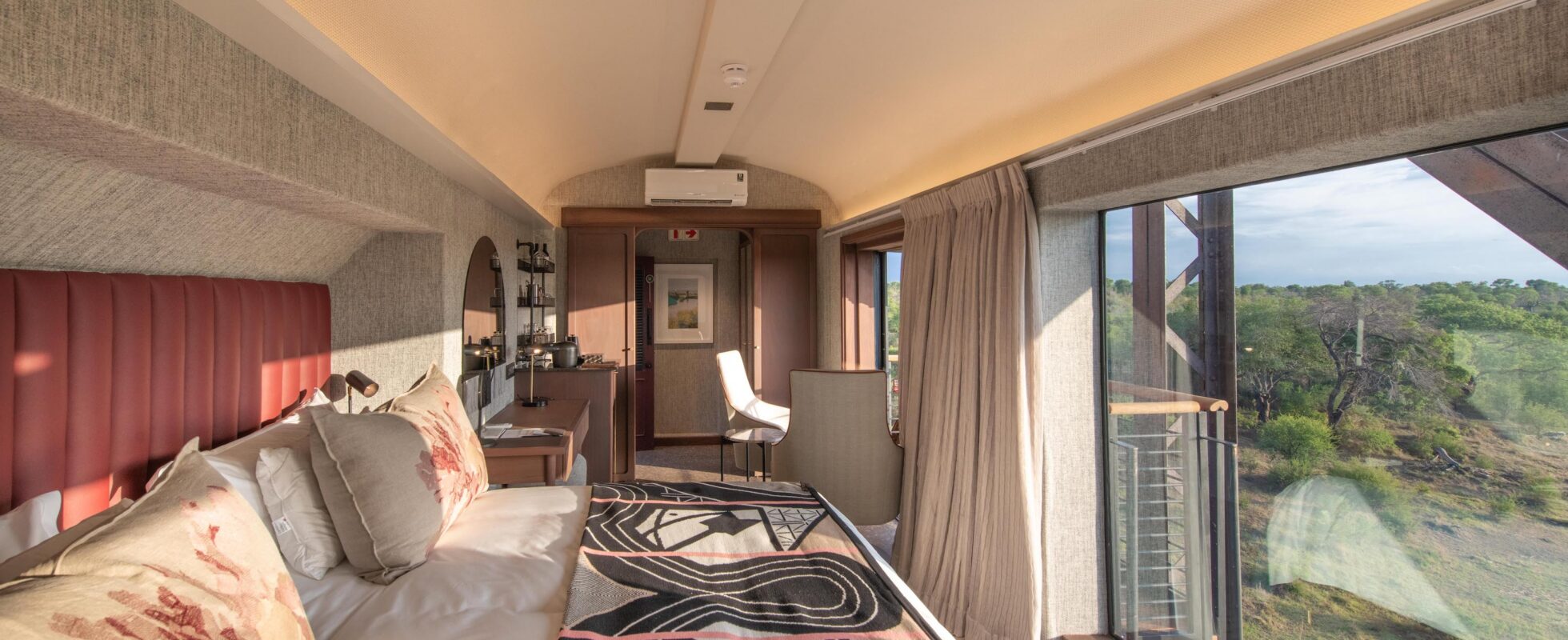 Situato permanentemente sul ponte storico Selati sopra il fiume Sabie, Kruger Shalati offre un’accoglienza di lusso unica in un treno ristrutturato che rende omaggio agli ospiti che hanno esplorato il parco quasi 100 anni fa. Il treno prende il nome da Shalati, una delle prime caporalesse donne della tribù Tsonga. Le 7 Bridge House Suites affacciano sul fiume e sull’iconico ‘Treno sul Ponte’ e sono dotate di letti super-king e bagni privati con vasca e doccia completa, toilette indipendenti, accappatoi e pantofole. Altri comfort in camera includono un mini-bar completamente fornito, una stazione per caffè e tè, Wi-Fi e aria condizionata. Due piscine affacciano sul maestoso Sabie, attirando animali e uccelli che vengono a dissetarsi ogni giorno, e c’è anche una spa di livello mondiale e un delizioso ristorante ispirato all’Africa.
