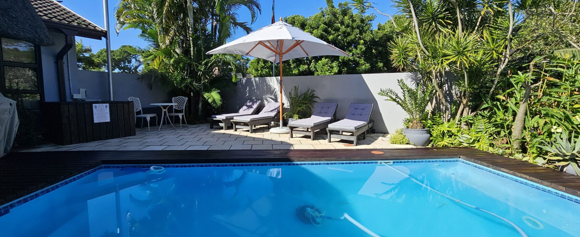 Il Leopard Corner Lodge si trova nella zona verde attorno a St Lucia, a pochi passi dalla spiaggia. Stando qui, hai buone possibilità di vedere ippopotami passare davanti al lodge di notte, a solo pochi metri di distanza. Altri visitatori possibili sono uccelli, scimmie, antilopi, facoceri e occasionalmente leopardi, quindi tieni le tue macchine fotografiche a portata di mano! Dispone di 9 camere ben arredate, tutte con bagno privato e doccia (e alcune con vasca spa) e articoli da toeletta, e sono dotate di letti queen-size o king-size, aria condizionata, scrivania, WiFi, TV satellitare, caffè e tè e un patio coperto. Alcune camere possono ospitare una terza persona (in un letto singolo aggiuntivo) e alcune possono essere unite in camere familiari. Ogni mattina viene servita una colazione continentale e inglese completa sulla terrazza principale, affacciata sulla piscina, sulla foresta e sul bellissimo giardino tropicale.