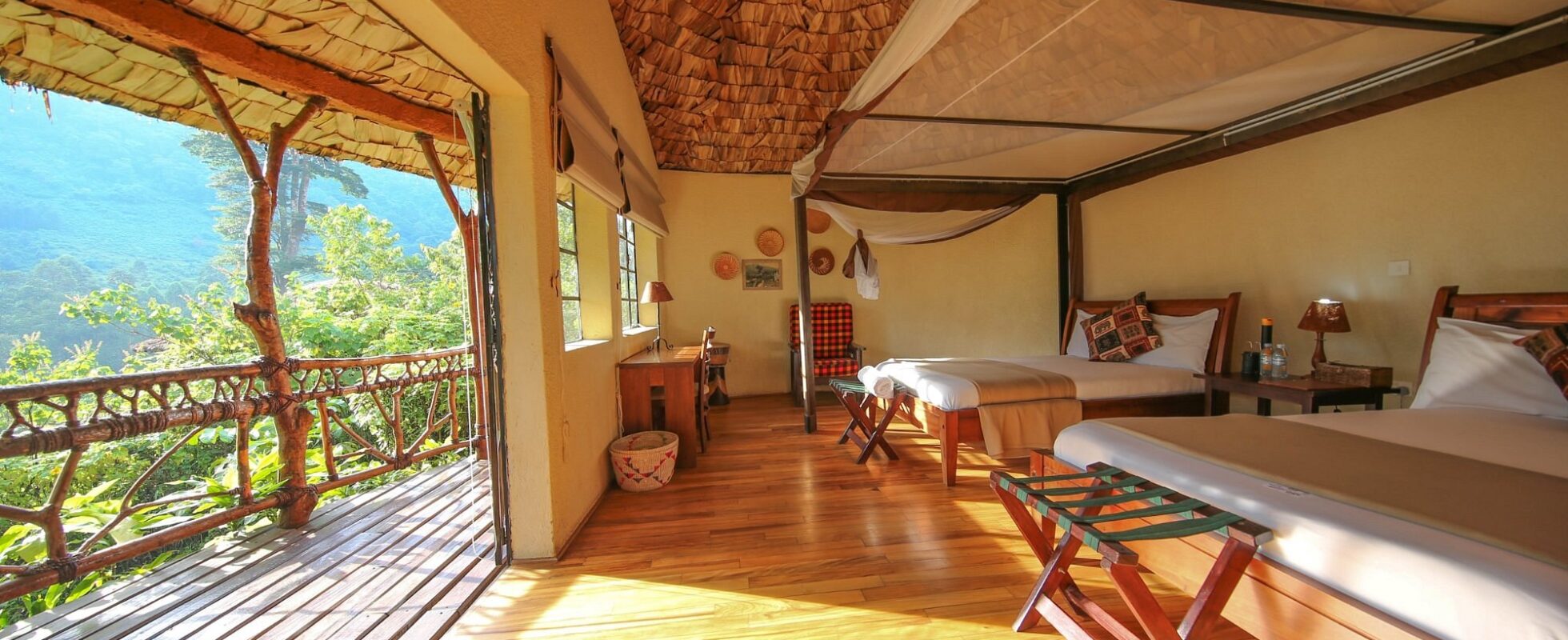 Progettate con cura in stile africano, con arredi in legno e soffitti alti, offrono un perfetto equilibrio tra spirito d’avventura e relax di alto livello: si può leggere un libro, conversare o semplicemente lasciarsi andare con lo sguardo sulla giungla verdeggiante, accompagnati dai suoni della foresta. A completare l’esperienza ci sono un ristorante pronto a conquistare il palato con piatti di ispirazione internazionale e la possibilità di concedersi un trattamento o un massaggio rilassante nella spa: tutto ciò che serve per una pausa speciale durante il trekking con i gorilla.