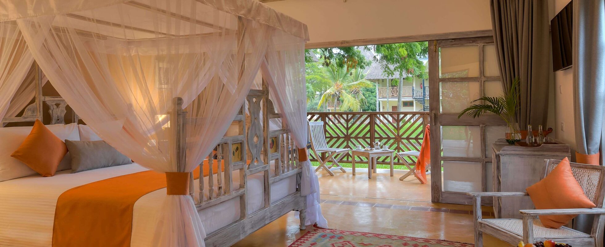Il bellissimo Neptune Palm Beach Boutique Resort è un piccolo resort boutique situato sulla spiaggia di Diani, a sud di Mombasa. Fa parte del gruppo Neptune Resorts. L’hotel dispone di sessanta camere spaziose, disposte quattro per bungalow, ciascuna con un tetto di palma che conferisce un’atmosfera tradizionale costiera. I pasti vengono serviti principalmente al ristorante Mnazi, dove la colazione, il pranzo e la cena a buffet a tema sono inclusi nel soggiorno. Per cambiare scenario, visita il Mawimbi Deck a bordo piscina, con vista sull’Oceano Indiano. La sera offre un menu à la carte con specialità come aragoste e gamberi, disponibili a un costo aggiuntivo. Il resort dispone anche di una spa, accesso diretto alla spiaggia, una piscina e due bar che servono bevande rinfrescanti tutto il giorno. Gli ospiti possono facilmente esplorare il vicino Neptune Village Beach Resort & Spa, che offre una varietà di attività e opzioni di intrattenimento. Nel complesso, è l’ambiente perfetto per rilassarsi e ricaricare le batterie o, se lo desideri, per goderti una giornata più attiva sull’acqua.