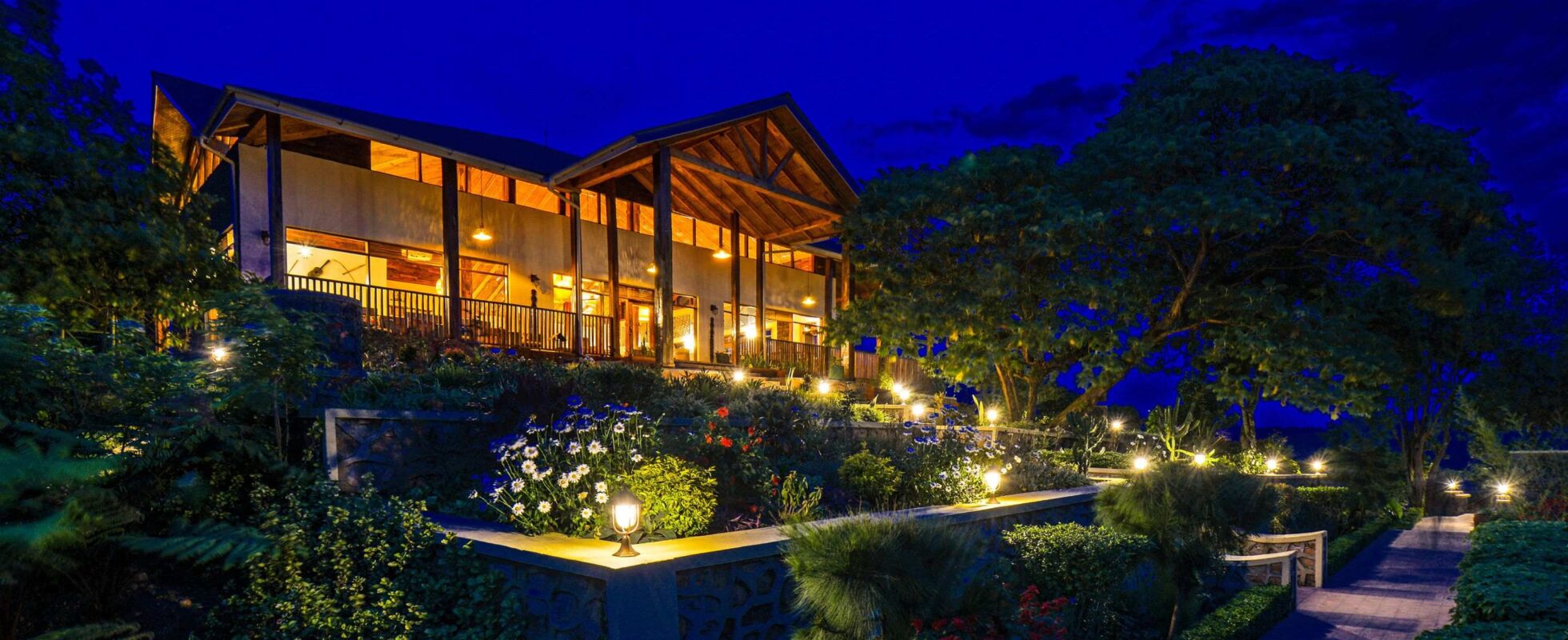 Il Nkuringo Bwindi Gorilla Lodge si trova sul crinale di Nteko, a un’altitudine impressionante di 2.161 metri, nella parte meridionale del Parco Nazionale Impenetrabile di Bwindi, a soli 300 metri dall’ingresso del settore di Nkuringo. Questo eco-lodge si integra perfettamente nel paesaggio selvaggio circostante e regala ampie vedute sulla foresta di Bwindi e sui vulcani dei Virunga. Le 18 camere sono pensate per offrire il massimo comfort e includono una calda zona notte, un bagno privato con docce calde alimentate a energia solare (e una vasca nelle camere Deluxe) e un’area soggiorno privata con camino acceso, ad eccezione delle camere standard. Il vero lusso, però, si trova all’esterno, sulla veranda privata, dove ci si può fermare ad ammirare la grandiosità del panorama. Il lodge dispone di due spazi dedicati alla ristorazione, entrambi accoglienti e con camini, dove vengono serviti piatti deliziosi preparati con ingredienti coltivati in loco. La lounge al piano superiore ospita anche un piccolo negozio di artigianato. E dopo il trekking con i gorilla, il modo migliore per rigenerarsi è concedersi un massaggio o un esclusivo rituale di bellezza presso la “Mist Spa” del Nkuringo.