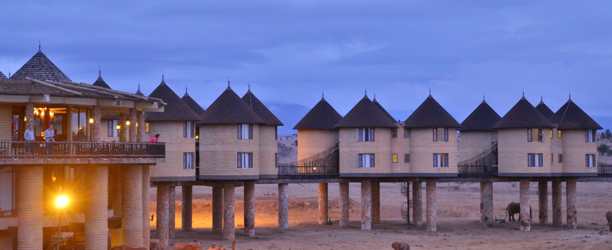 Il Salt Lick Safari Lodge si trova nel cuore del Taita Hills Wildlife Sanctuary. Offre una vista mozzafiato sulla pozza d’acqua vicina (raggiungibile tramite un tunnel per avvicinarti ancora di più!) e della natura circostante. Il lodge stesso merita una visita, con tradizionali case rotonde a due piani, elevate su pali sopra le pianure dello Tsavo. Le camere sono ben arredate con bagno privato, mentre il ristorante propone cibi deliziosi per colazione e cena. Il pranzo, però, viene servito al ristorante dell’hotel partner Taita Hills Lodge, così puoi visitare il suo Museo della Prima Guerra Mondiale. Una volta di ritorno al Salt Lick, dormi e ceni con gli elefanti ai tuoi piedi: un’esperienza unica!