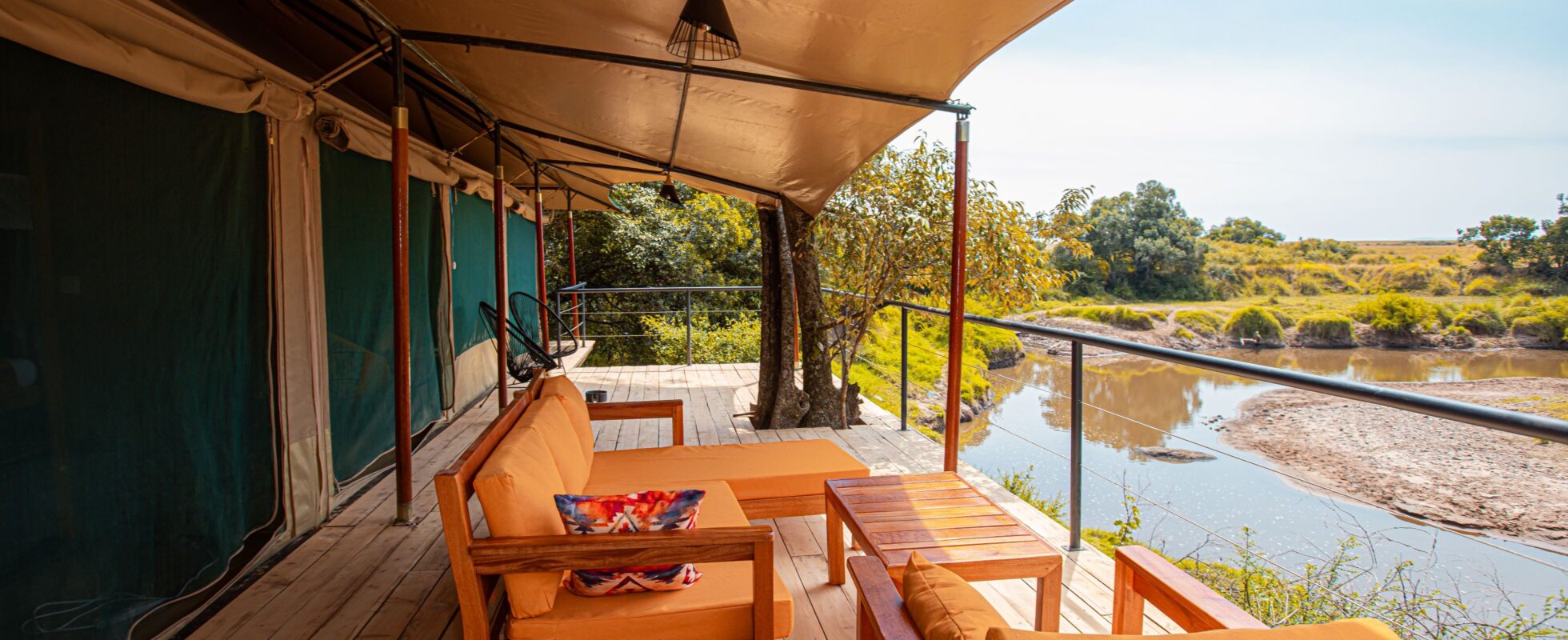 The Serenity Mara Legends Camp è un bellissimo campo tendato nascosto in una foresta accanto al fiume Olarro Orok, nel cuore della Riserva Nazionale del Masai Mara. Le 14 tende sono progettate con cura e mescolano comodità moderne con uno stile autentico della savana africana. Le stanze sono spaziose e arredate con mobili rustici in legno e tessuti dalle tonalità terrose. I bagni privati offrono docce con acqua calda. Dopo una cena deliziosa e una chiacchierata attorno al falò, goditi una notte di sonno ristoratore e svegliati ai suoni della natura in un letto confortevole. Fai il pieno di energia con una sana colazione mentre osservi gli ippopotami che si bagnano nel fiume vicino, poi parti per un emozionante safari. È un posto incantevole per una pausa tra i tuoi safari!
