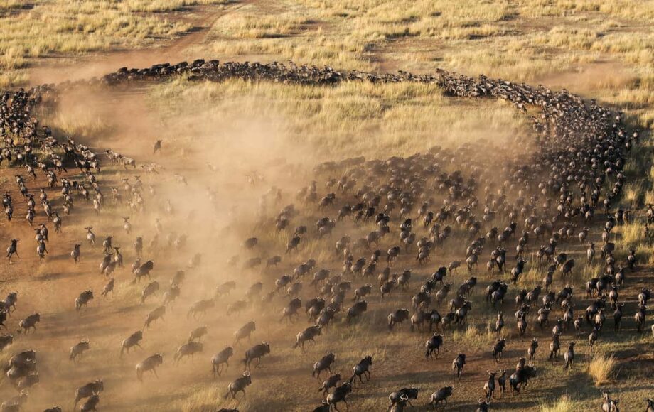 La Migrazione degli gnu, o Grande Migrazione degli gnu, è il più grande fenomeno migratorio di mammiferi al mondo e una delle “Sette Meraviglie Naturali dell’Africa”. È un vero spettacolo vedere 1,5 milioni di gnu, 400.000 zebre, 12.000 antilopi e 300.000 gazzelle di Grant e Thomson sfrecciare attraverso le sterminate pianure della Riserva Nazionale Masai Mara. È impossibile non accorgersi della Grande Migrazione, anche quando si è ancora distanti: tra i versi di gnu e zebre e il rumore di milioni di zoccoli sull’erba, l’emozione inizia ancora prima di vedere gli animali. Ti basterà sentirli!